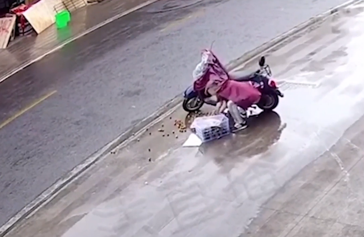 Dù nhanh chóng trộm được thùng trái cây, nhưng người đàn ông lại gặp nhiều khó khăn trong quá trình bỏ chạy.