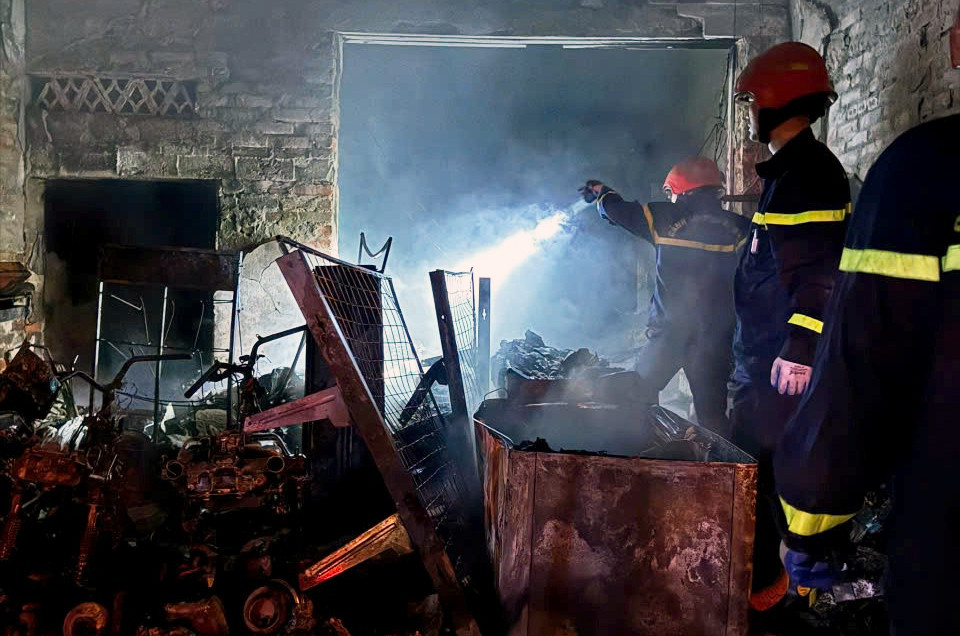 Tại hiện trường, lực lượng cảnh sát PCCC&CNCH khẩn trương triển khai lực lượng, phá cửa cuốn để vào bên trong nhà đưa người mắc kẹt ra ngoài an toàn, đồng thời phun nước dập tắt đám cháy, ngăn chặn không cho ngọn lửa lan sang các hộ dân liền kề.