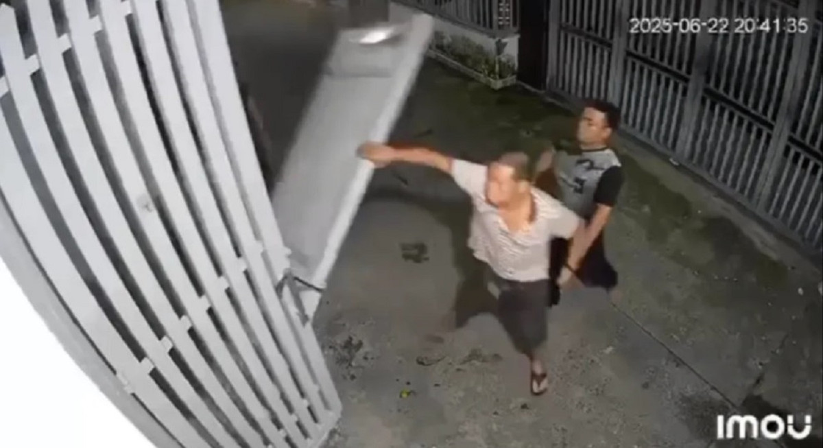 Sau đó, ông K. đang đi nhậu ở nơi khác chạy về rồi sang nhà anh A. mắng chửi. Theo hình ảnh camera ghi lại, ông K. liên tục nói lớn tiếng, cầm túi rác ném vào camera và dùng tay kéo ngã cửa sắt. Thời điểm này, có 6 người khác cùng chạy sang nhà anh A. Trong đó, một người đàn ông liên tục can ngăn, khuyên ông K. về nhà.