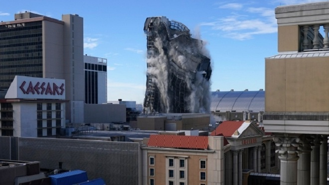 Trump Plaza là dấu tích cho quá khứ hào nhoáng của thành phố Atlantic, (bang New Jersey). Tuy nhiên, sòng bạc này phải đóng cửa vào năm 2014 và đã xuống cấp trầm trọng. Chính quyền địa phương bắt đầu phá dỡ một phần tòa nhà từ đầu năm ngoái nhưng chỉ phá bỏ hoàn toàn vào hôm qua.