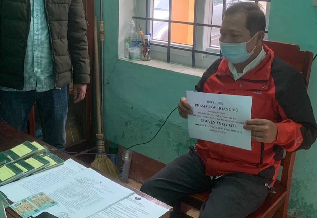 Trước đó, ngày 04/12, Phòng Phòng chống Ma tuý và Tội phạm phối hợp với Đồn Biên phòng cửa khẩu Quốc tế La Lay (thuộc Bộ Chỉ huy Bộ đội Biên phòng Quảng Trị) kiểm tra, phát hiện hồ sơ xuất cảnh sang Lào của 50 công dân Việt Nam do Phạm Quốc Hoàng Vũ (SN 1969, trú tại thôn Hòa Mỹ, xã Lộc Bổn, huyện Phú Lộc, tỉnh Thừa Thiên - Huế) yêu cầu làm thủ tục có biểu hiện nghi vấn làm giả.