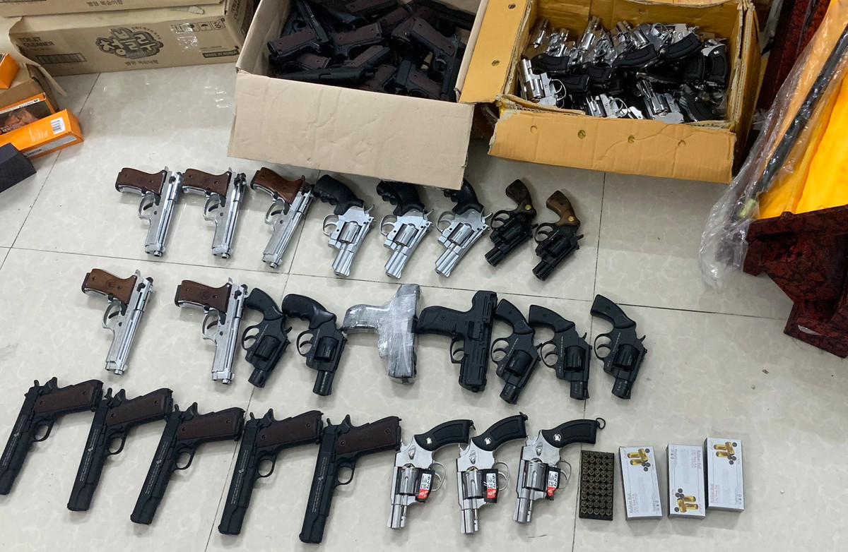 Khám xét nơi ở các nghi phạm, lực lượng chức năng thu giữ gần 150 khẩu súng, 250 viên đạn, hơn 4.000 dao, kiếm và hàng trăm công cụ hỗ trợ khác.