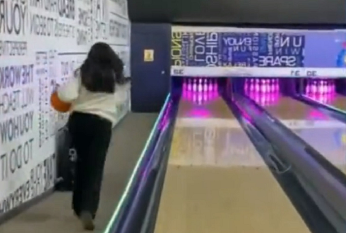 Cô gái có pha ném bowling "đi vào lòng đất". (Nguồn: Tiktok/ waroosh0MT2__)