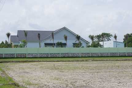 Khu biệt thự này nằm giữa cánh đồng, có tầm quan sát rộng ra xung quanh. Được biết, chủ nhân khu biệt thự cho xây dựng tường bao rồi mới xây nhà, dường như để tránh sự quan sát của những người xung quanh.