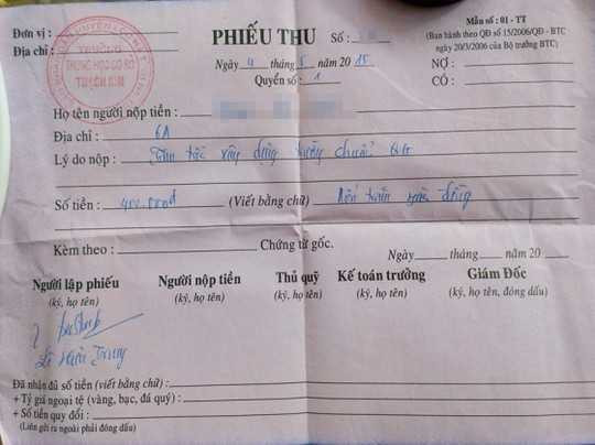 | Phiếu thu tiền xây dựng trường chuẩn quốc gia của trường THCS Thạch Kim |