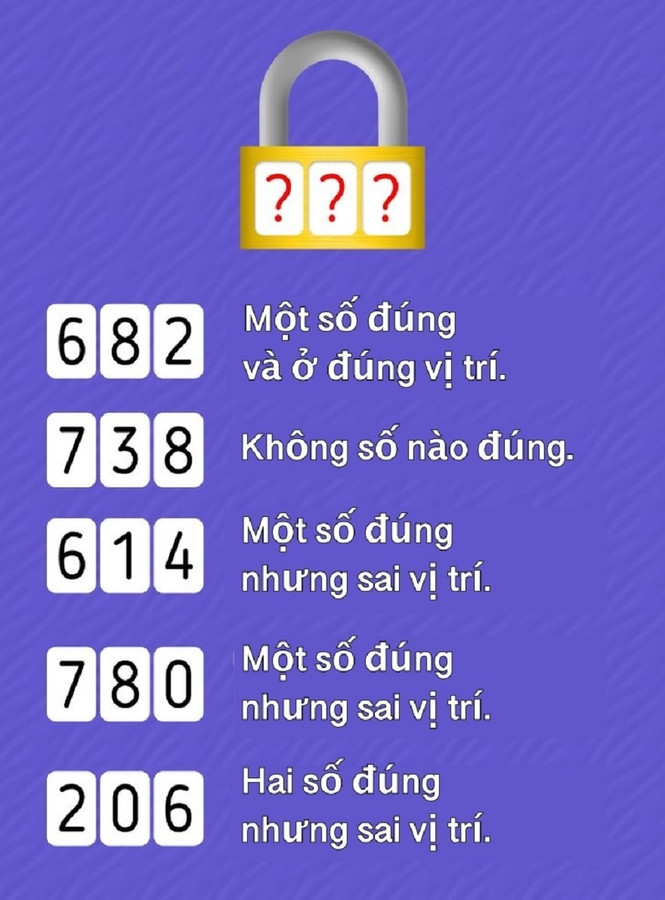 Tìm mã số cho ổ khoá theo các dữ kiện sau.