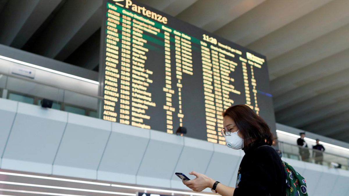 Một hành khách đeo khẩu trang sử dụng điện thoại tại Sân bay Fiumicino của Rome, ngày 31/1/2020. (Ảnh: Reuters)