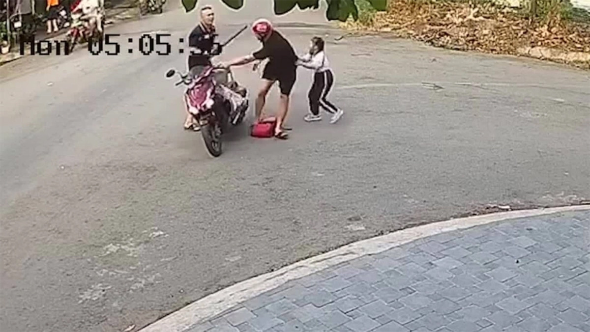Đoạn video đang lan truyền trên mạng xã hội ghi lại cảnh tượng một gã đàn ông lực lưỡng cầm gậy bóng chày đánh tới tấp vào người đi xe máy chở theo con nhỏ. Anh ta làm vậy chỉ để xả cơn tức giận vì ô tô của mình suýt va vào xe máy kia khi qua ngã tư.