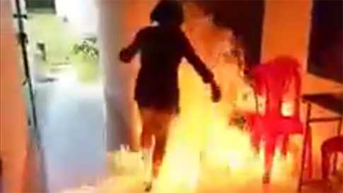 T cố gắng chạy khỏi đám cháy sau khi châm lửa đốt