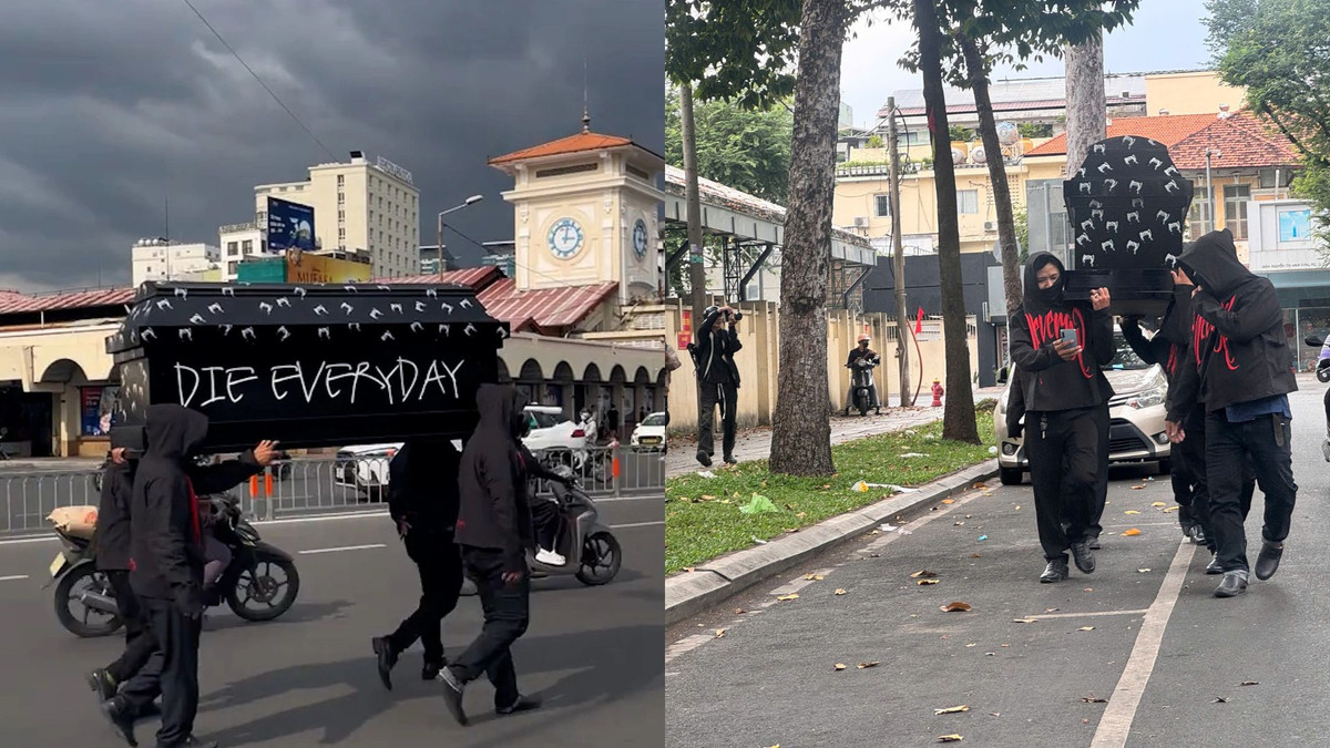 Muốn tăng tương tác trên mạng xã hội, Hồ Ngọc Tuấn, một người kinh doanh quần áo trên TikTok, dàn dựng cảnh 4 người mặc áo đen khiêng quan tài đi diễu phố, tạo hiệu ứng sốc để thu hút sự chú ý. Sáng 25/2, nhóm của Tuấn thực hiện kế hoạch này tại đường Huyền Trân Công Chúa, khu vực chợ Bến Thành, giao lộ Lê Lai - Phạm Hồng Thái, TP.HCM.