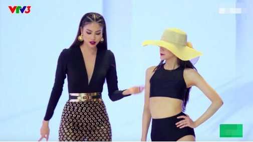 | Phạm Hương hướng dẫn An Nguy ở thử thách catwalk. Ảnh: Windy |