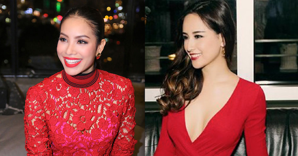 Trong một sự kiện đầu năm 2016 vừa qua, Mai Phương Thúy hút mọi ánh nhìn với chiếc đầm cổ V, xẻ cao tông đỏ rực rỡ. Đây là một trong những màu váy mà hoa hậu đặc biệt yêu thích.