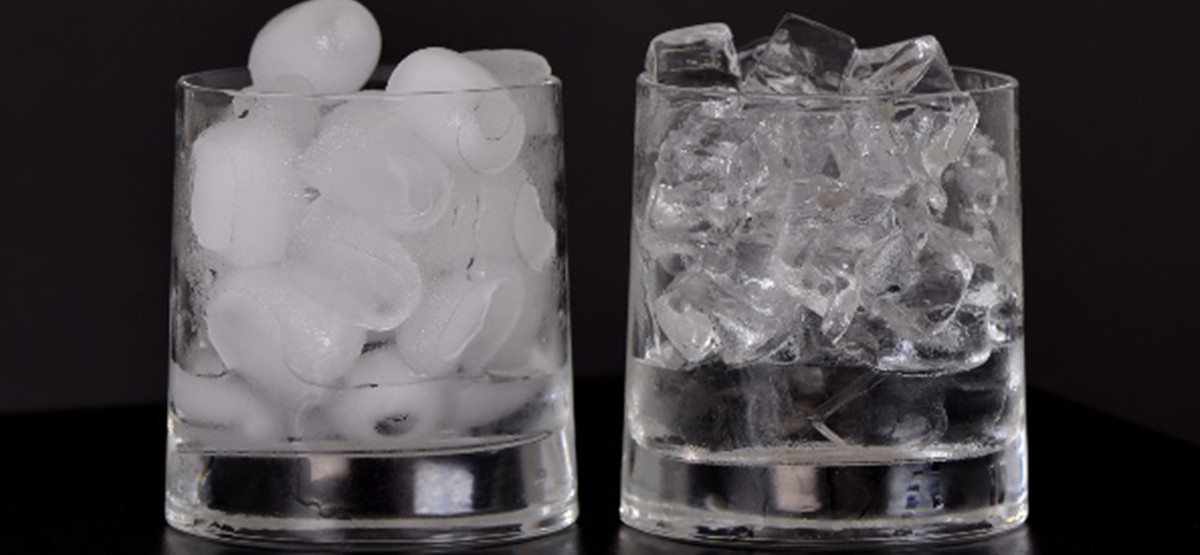 Phân biệt đá làm từ nước đun sôi và chưa đun sôi: Đá được làm từ nước đun sôi thường trong veo, còn đá làm từ nước chưa đun sôi kém trong hơn. (Ảnh: Memphis Ice Machine Company)