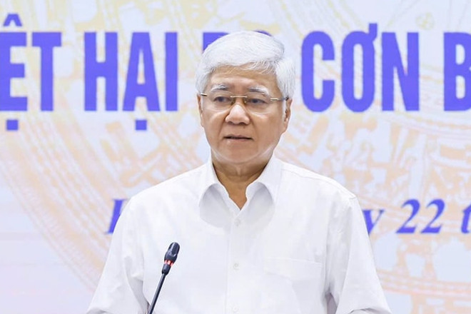 Chủ tịch Ủy ban Trung ương MTTQ Việt Nam Đỗ Văn Chiến chủ trì hội nghị triển khai công tác hỗ trợ đợt 3 đối với các địa phương bị thiệt hại do cơn bão số 3 gây ra. (Ảnh: Quang Vinh)