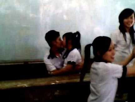 Cặp đôi học sinh thể hiện "tình yêu" trước sự có mặt của rất nhiều bạn bè và các bạn trong lớp cũng tỏ ra rất bình thường trước hình ảnh này nên vẫn thoải mái chơi đùa bên cạnh.