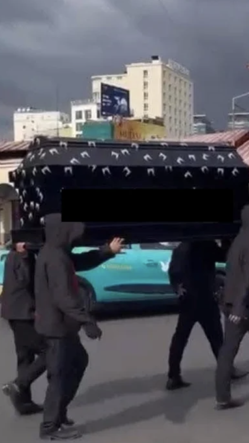 Phản cảm nhóm thanh niên trùm kín đầu, khiêng quan tài trước chợ Bến Thành