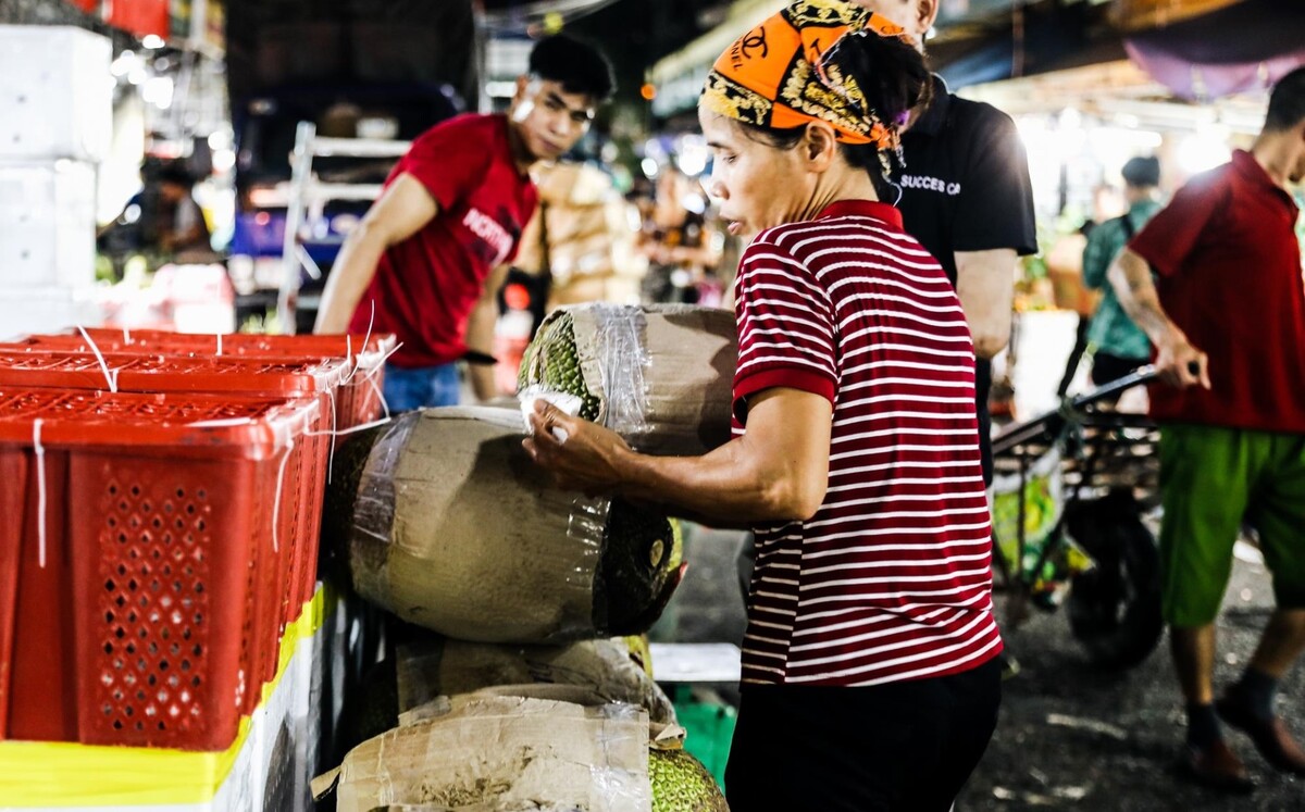 Các tiểu thương bán lẻ dậy sớm đến chợ đầu mối Long Biên để gom hàng, đưa về phục vụ người dân.