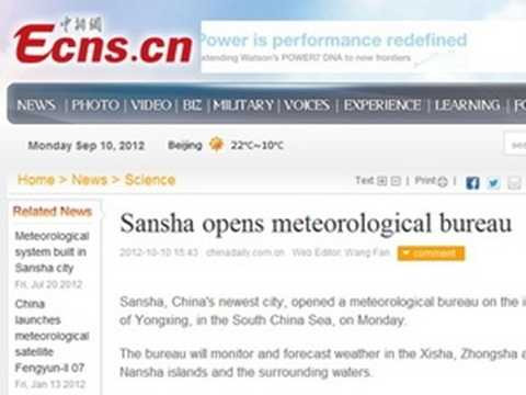 Mạng "Tin tức Trung Quốc" (có địa chỉ www.ecns.cn) ngày 10/10 đưa tin phòng khí tượng của cái gọi là "thành phố Tam Sa" ngày 8/10 đã chính thức được thành lập tại đảo Vĩnh Hưng thuộc quần đảo Tây Sa, tức đảo Phú Lâm thuộc quần đảo Hoàng Sa của Việt Nam.