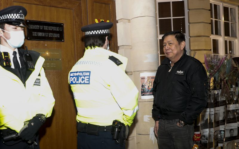 Đại sứ Myanmar tại Anh Kyaw Zwar Minn cho rằng “đây là tòa nhà của tôi, tôi cần vào trong. Đó là lý do tôi đợi ở đây”. Ông đã nói chuyện với những người biểu tình trên đường phố bên cạnh đại sứ quán, nơi có cảnh sát túc trực bảo vệ.