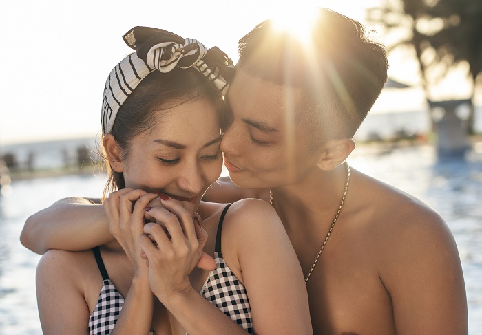 Khánh Thi và Phan Hiển không ngần ngại thể hiện những cử chỉ tình tứ.