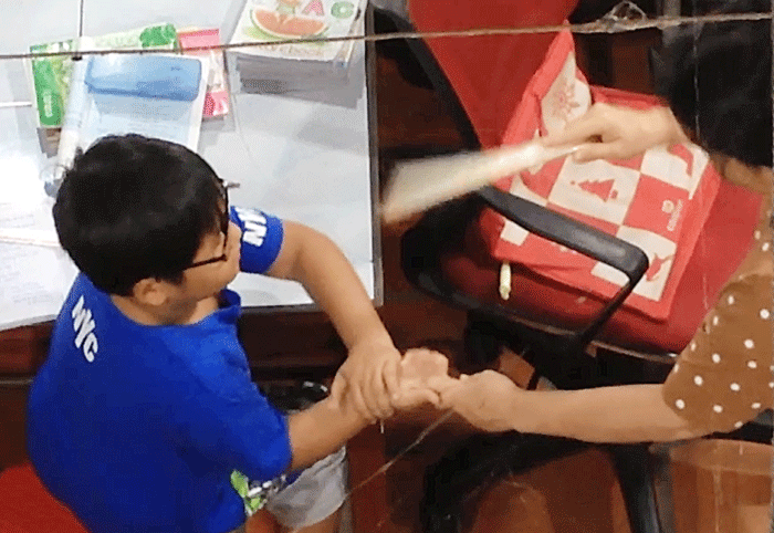 Người phụ nữ dùng thước đánh liên tục 6 cái vào tay, trước phản xạ bất lực từ em học sinh nhỏ tuổi.