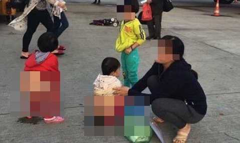 Nội dung bức ảnh cho thấy, người phụ nữ trung niên trong bức ảnh đang cho một bé gái ngồi tè xuống sàn xi măng. Cạnh đó, một bé gái lớn hơn vừa “trút xong bầu tâm sự” trong khi một bé nữa đứng gần đó có biểu hiện như cũng có nhu cầu tương tự. Người phụ nữ cùng 3 đứa bé hồn nhiên ngồi giữa sân bay đông người để làm công việc lẽ ra phải kín đáo.