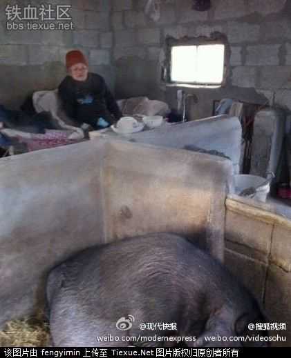 2 năm qua, cụ Giang ngày ngày làm bạn với ...con lợn nái. Hình ảnh cụ già trăm tuổi, thân hình gầy gò, nằm co ro trong góc tường chuồng lợn khiến bình luận viên chương trình thời sự Trung Quốc thốt lên "không tưởng tượng nổi".