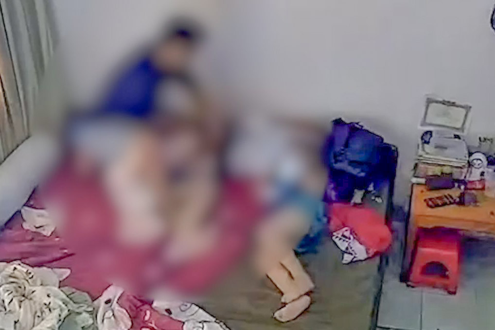Trong video, một người phụ nữ đang nằm trên giường thì bất ngờ bị chồng lao tới, dùng tay đánh tới tấp vào mặt, vào người.