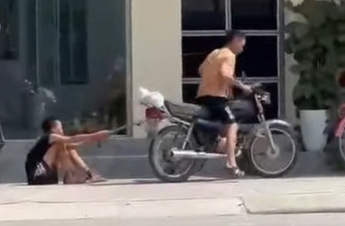 Theo hình ảnh trong clip do những người chứng kiến sự việc ghi lại, tay chân cháu bé đã bị tím bầm, chảy máu. Người đàn ông kéo lê cháu bé trên đường bằng xe máy chính là bố ruột của cháu.