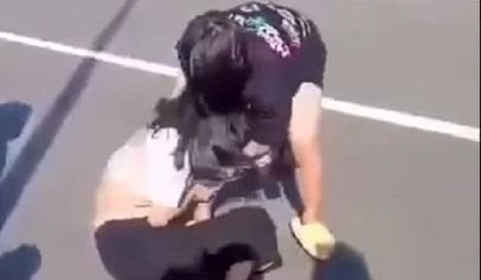 Mặc dù T. khóc lóc van xin nhưng A. vẫn lao vào đánh tới tấp. (Ảnh: F.B)