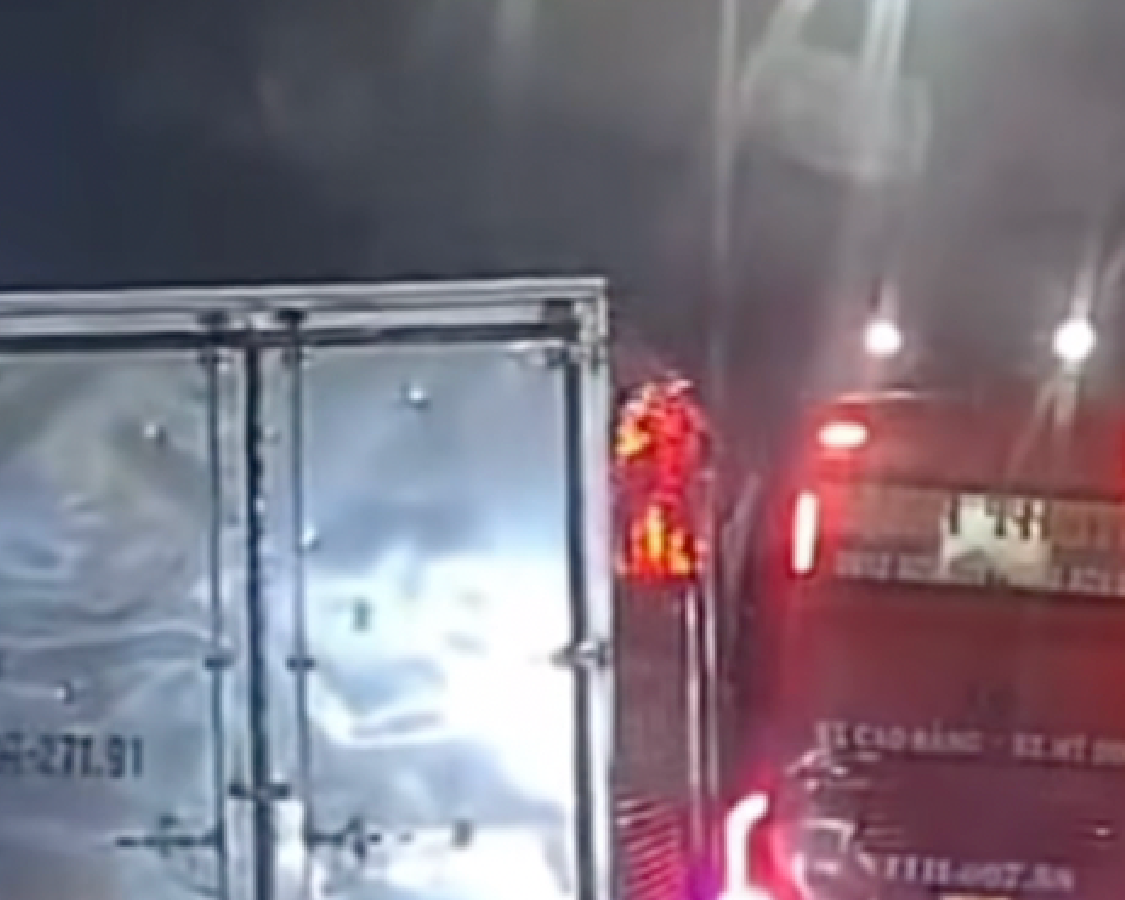 Phẫn nộ tài xế xe khách ép xe tải tóe lửa ở Vành đai 3 trên cao Hà Nội