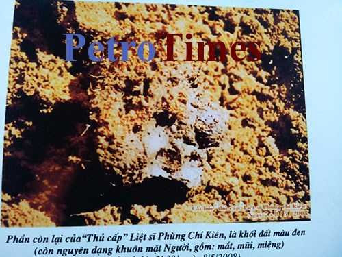 Khi mới đào lên, thủ cấp của liệt sỹ Phùng Chí Kiên chỉ còn là khối đất đen nhưng có nguyên hình hốc mắt, mũi và miệng. Trong quá trình cất bốc, đoàn quy tập đã có thể gom luôn cả các vật giống hình xương lẫn xung quanh khu đất (trong biên bản cũng ghi rõ: Nghi là răng).