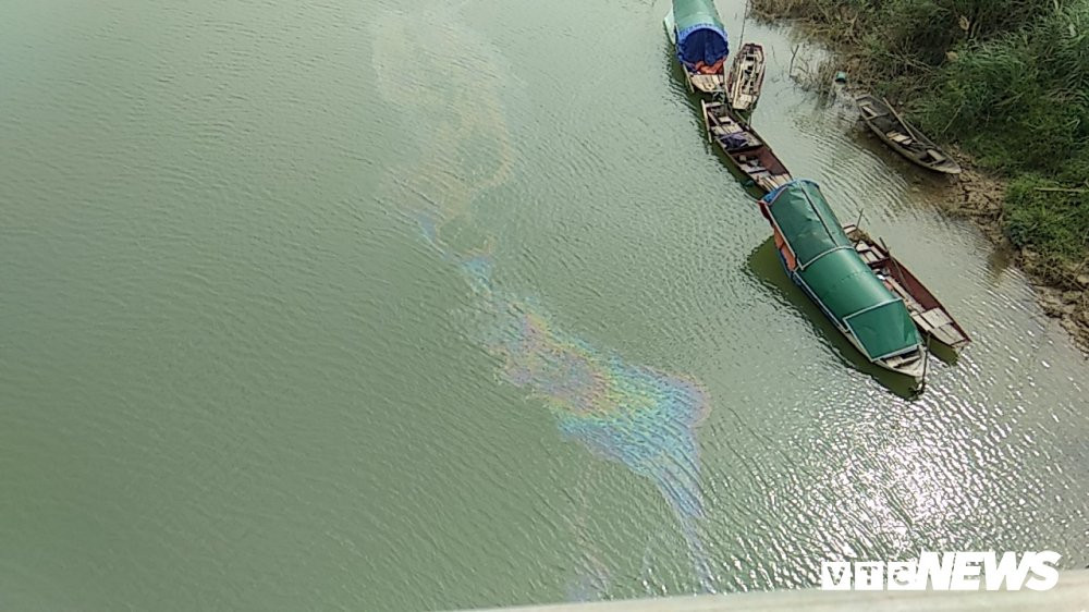 Vệt dầu loang trên sông Lam dưới ánh nắng ngày 14/12.