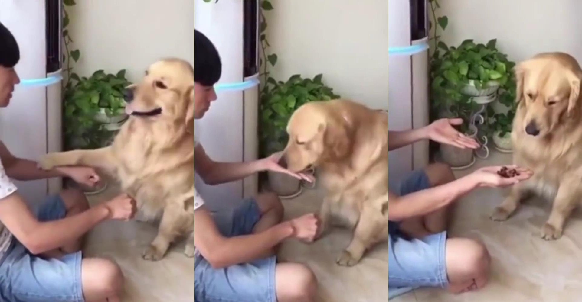 Dù chọn đúng bên tay có đồ ăn nhưng chú chó trong clip vẫn nuối tiếc vô hạn khi nhìn thấy kết quả cuối cùng.