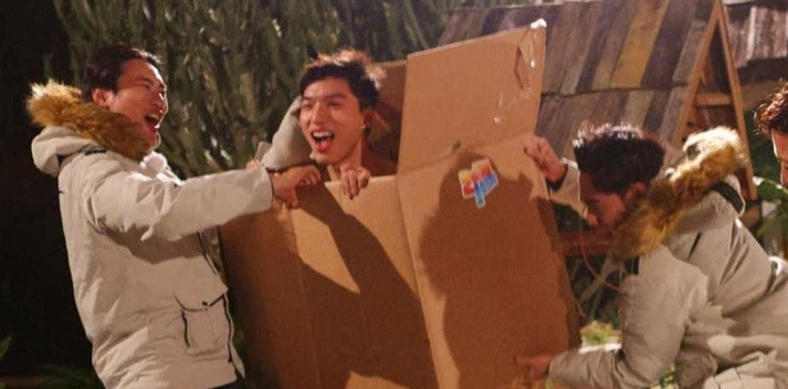 Với khả năng nhớ tên bài hát hạn chế của các thành viên khác, nam rapper phải lần lượt cởi bỏ từng món đồ trên người, từ áo khoác, áo len, bao tay, giày, vớ... Thậm chí, anh phải cởi cả quần dài và chỉ có thể che chắn bằng thùng giấy. Chứng kiến em út phải chịu phạt giữa thời tiết lạnh giá, 5 thành viên còn lại rất hào hứng và không ngừng chọc phá.