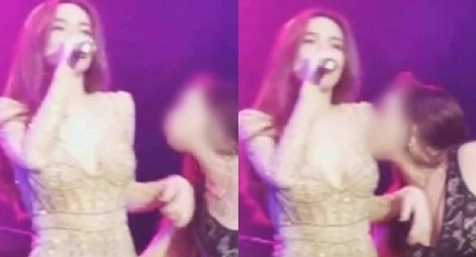 Hồ Ngọc Hà bị một người phụ nữ quá khích sàm sỡ, ôm eo trong lúc biểu diễn.