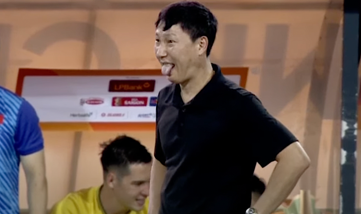 Bên ngoài sân, ống kính truyền hình ghi lại cảm xúc của ban huấn luyện đội tuyển Việt Nam. Ông Kim Sang-sik lè lưỡi như một cách giải tỏa cảm xúc. Nhà cầm quân người Hàn Quốc quá bất ngờ khi học trò mắc sai lầm sơ đẳng ở thời điểm quan trọng.