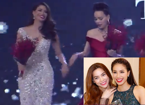 Video clip Hà Hồ giật tay khi Phạm Hương chủ động nắm tay: