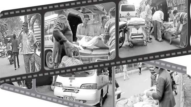 Ngay lập tức, Phước “heo” điều một chiếc xe gắn còi hụ lao từ ngoài cổng vào đậu ngay trước hành lang bệnh viện, khiêng người bệnh lên xe.