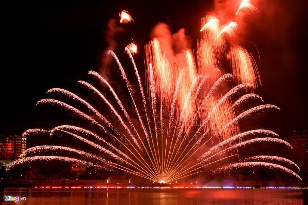 20h30 ngày 30/4, những quả pháo hoa đầu tiên của đội Việt Nam bắn lên trên bầu trời thành phố Đà Nẵng tại Lễ hội pháo hoa quốc tế Đà Nẵng 2017.