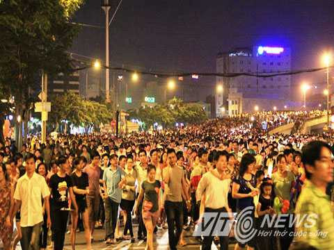 | Đông đúc người dân chen chúc nhau tìm kiếm cho mình địa điểm lý tưởng để xem bắn pháo hoa |