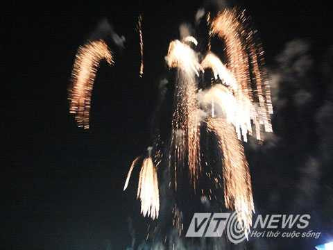 | Một bông pháo bung nở trong sự vỗ tay reo hò của người dân |