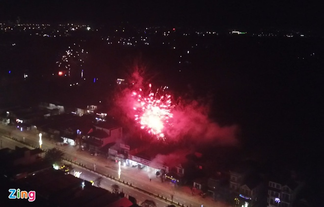Theo ghi nhận, dọc quốc lộ 1, đường Trần Phú, Ngô Quyền, khu vực cầu Cày… thuộc xã Thạch Trung (TP Hà Tĩnh) và xã Thạch Hạ (huyện Thạch Hà) có hàng chục điểm bắn pháo hoa tự phát, liên tục trong khoảng 30 phút, gồm cả pháo tầm thấp và tầm cao.