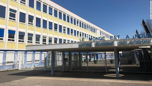 Trường trung học Eugene Delacroix ở Drancy, ngoại ô Đông Bắc Paris, nơi ít nhất 20 học sinh đã mất người thân vì COVID-19. (Ảnh: CNN)
