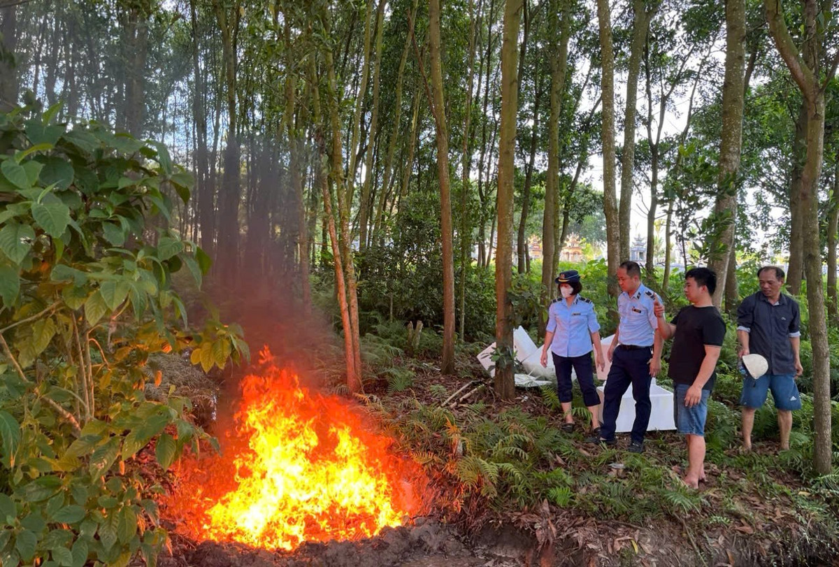 Đội QLTT số 2 giám sát việc tiêu hủy thực phẩm không rõ nguồn gốc. (Ảnh: QLTT)