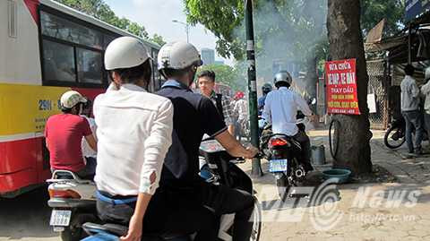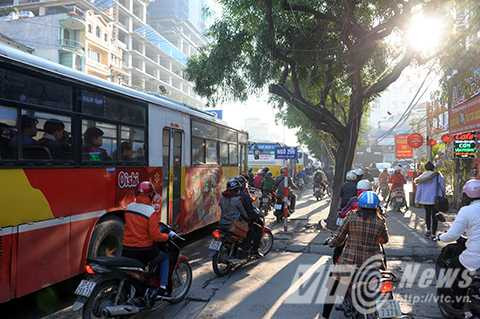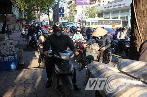 | Vỉa hè biến thành lòng đường trong giờ cao điểm |
