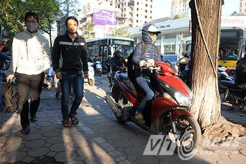 | Những người đi bộ trên vỉa hè luôn trong tâm trạng lo lắng vì sợ va chạm với xe máy |