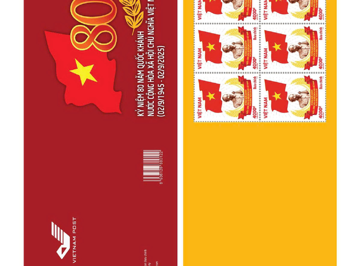 Tiếp theo là bìa gài tem A5 Quốc khánh, bao gồm 2 tem, 1 bloc tem chính thức và dấu nhật ấn ngày phát hành 26/8/2025. Ngoài ra còn có bìa gài phát hành đặc biệt Bộ tem bưu chính “Kỷ niệm 80 năm Quốc khánh nước Cộng hòa Xã hội Chủ nghĩa Việt Nam” và Sổ tem lưu niệm được đầu tư thiết kế với độ tinh tế và mỹ thuật cao, bìa sổ cứng, dập nổi logo ấn phẩm tạo cảm giác trang trọng.