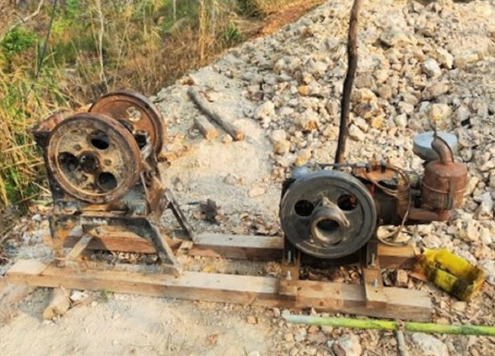 Tại đây, tổ công tác đã yêu cầu các đối tượng dừng hoạt động khai thác, lập biên bản tạm giữ toàn bộ tang vật, phương tiện vi phạm gồm: 4 máy nổ, máng đãi vàng, 5 m3 quặng nguyên khai.