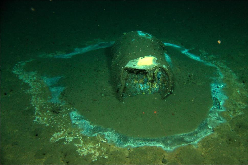 Vật thể nghi thùng chứa DDT được tìm thấy dưới đáy biển. (Ảnh: AP)